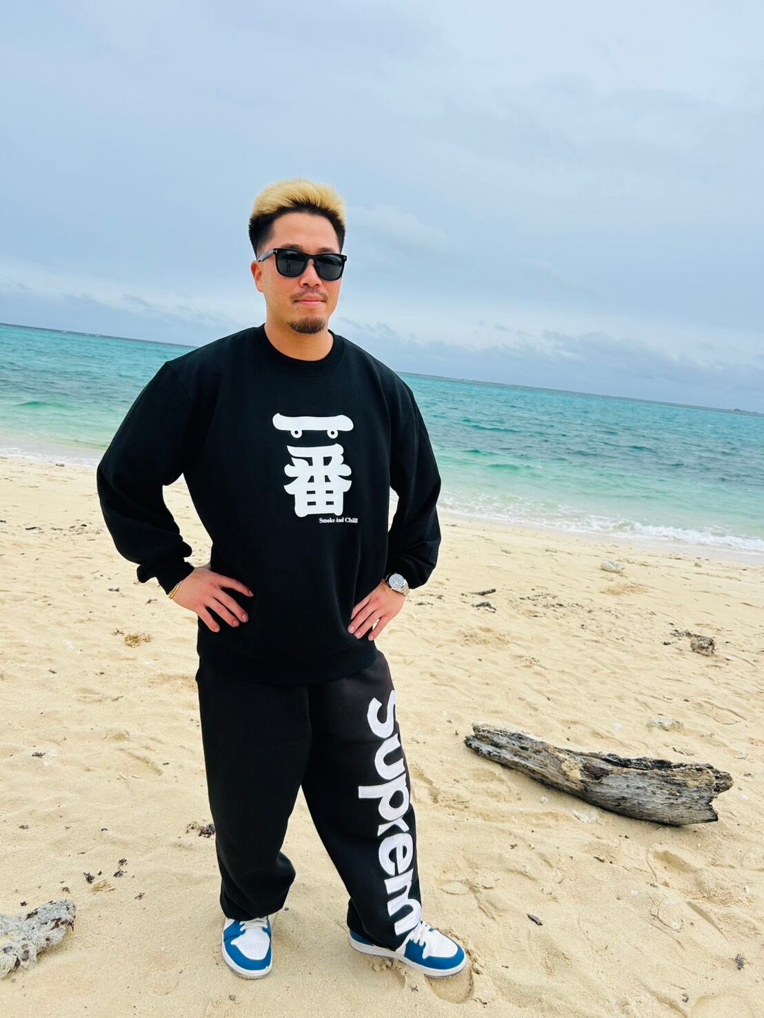 一番の一がスケートボートになっており、オシャレでカッコいいトレーナーになっております。